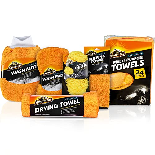 Armor All Car Cleaning Supplies Kit by Armor All, Includes Microfiber Towels, Wash Mitt and Pad, Drying Towel, Buffing Towel and Microfiber Duster