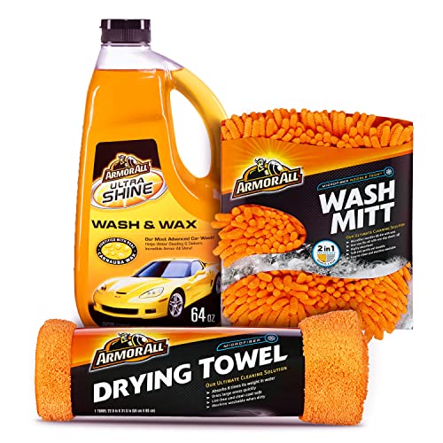 Armor All Car Wash Kit, Includes Car Wash Soap, Wash Mitt & Microfiber Towel (3 Piece Kit)