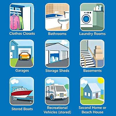 Basements, Clothes Closets, Laundry Rooms, Bedrooms, Offices and Kitchens.