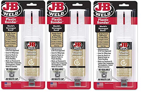 J-B Weld 50133 Plastic Bonder Structural Adhesive Syringe - Dries Tan - 25 ml Pack Of 3