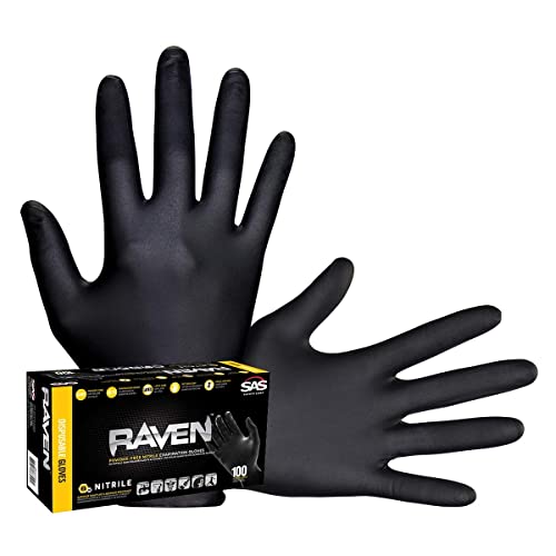 SAS Safety 66518 Raven Powder-Free Disposable Black Nitrile 6 Mil Gloves, Large, 100 Gloves by Weight(Pack of 1)